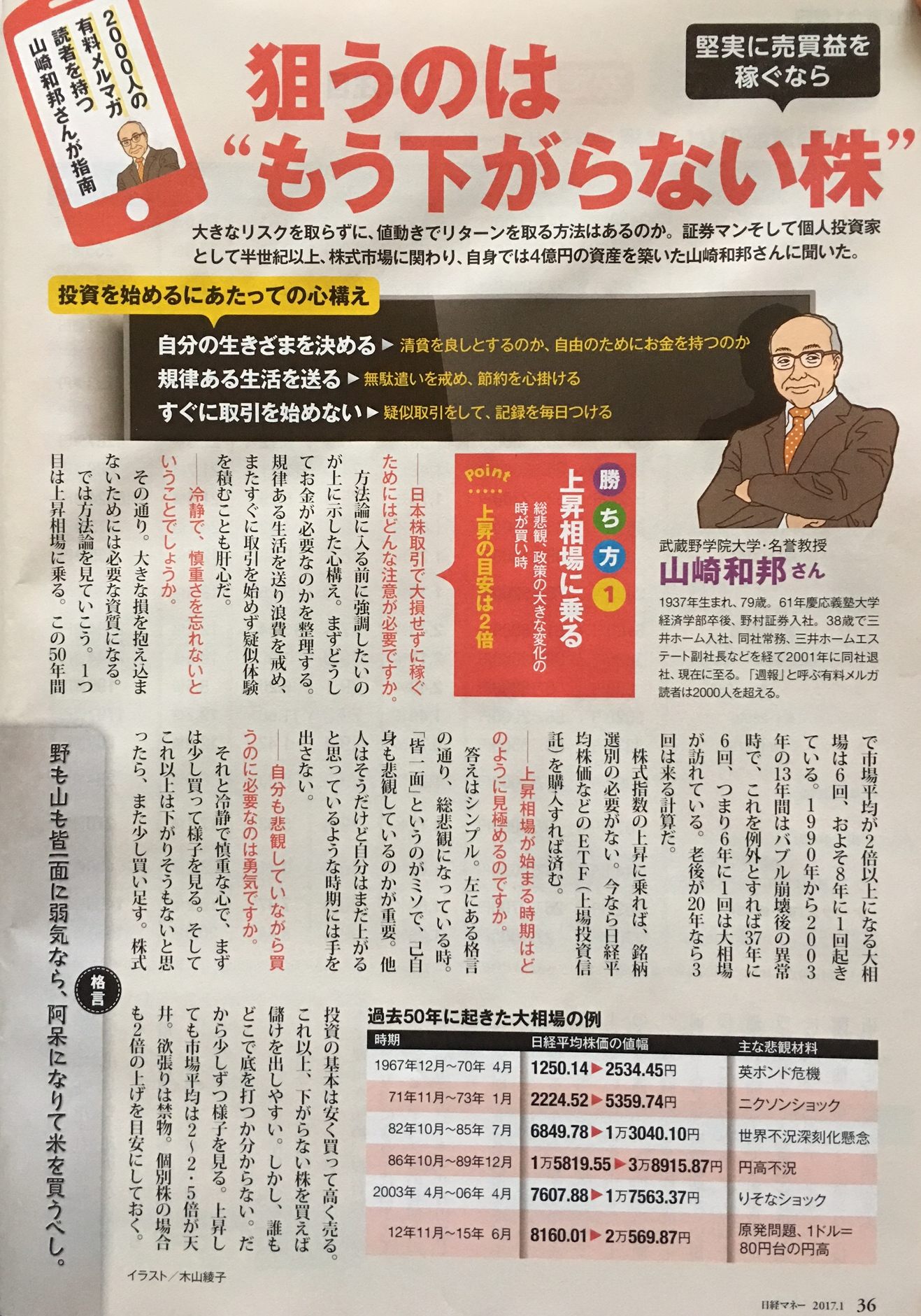 (17)月刊誌「日経マネー」3回目の取材(「50歳からの金融資産増殖法、リタイアからの増殖法」の取材) *一部抜粋 今50歳の人はバブルの頂上(1989年12月株価は史上最高値38,915円)に社会人になった人だ。この人